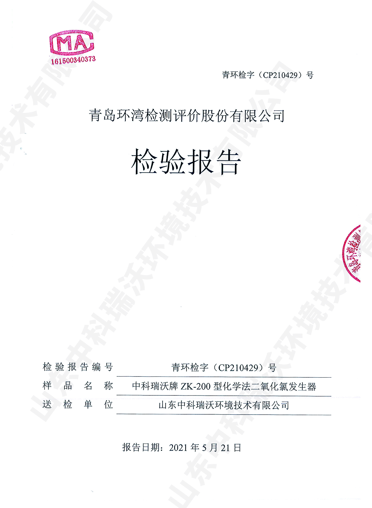 醫(yī)療污水處理設(shè)備檢測報告~二氧化氯消毒